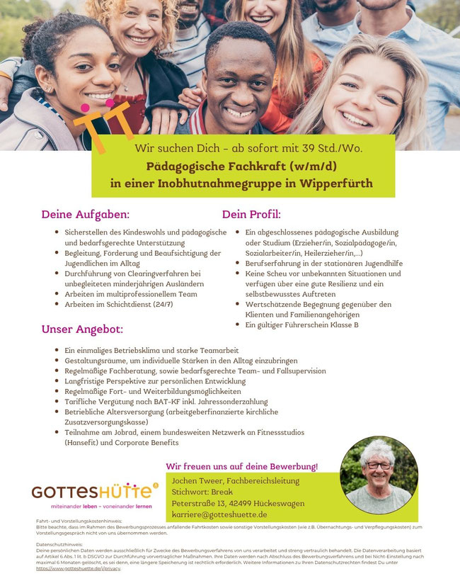 Pädagogische Fachkraft (w/m/d) Inobhutnahmegruppe